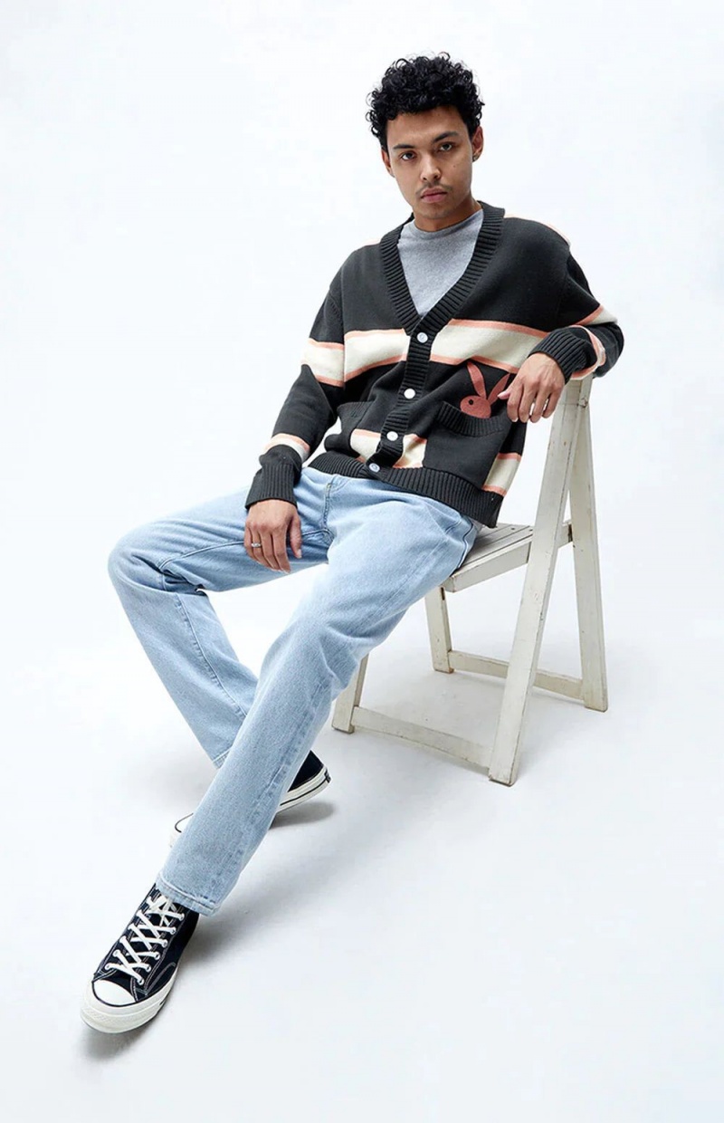 :: Chamarras Playboy Peek-A-Boo Cardigan Hombre Negros | PLBY-593103