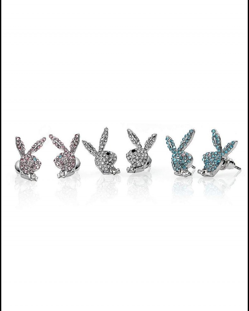 :: Joyas Playboy Playboy Bunny Stud Earrings, Multi-colored 3 Pack Mujer Multicolor | PLBY-592622