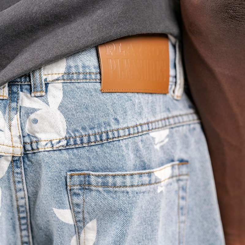 Pantalon Playboy x Pleasures Scatter Denim Hombre Negros | PLBY-592993