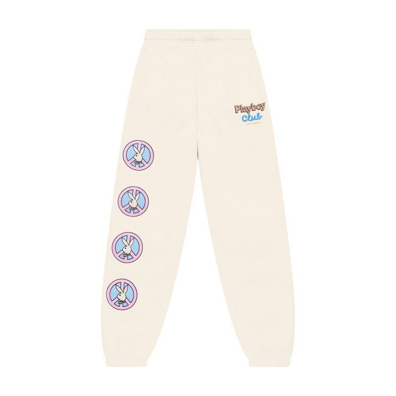 :: Pantalones Jogger Playboy The October 1966 Cover Scoop Neck Mujer Beige Blancos | PLBY-592741
