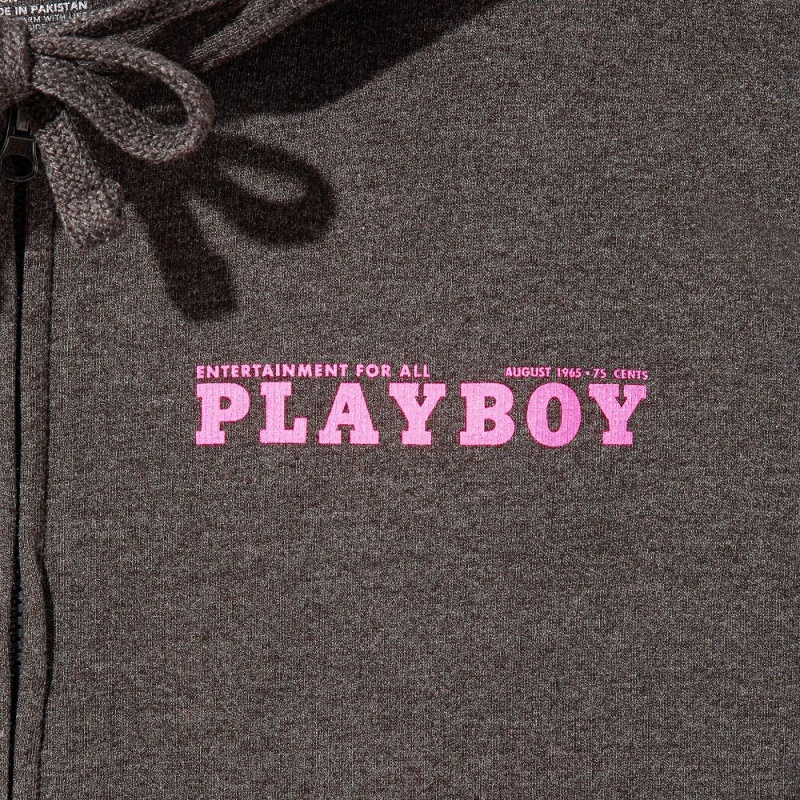 :: Sudadera con Capucha Playboy August 1965 Cover Zip-up Charcoal Hombre Grises | PLBY-593063