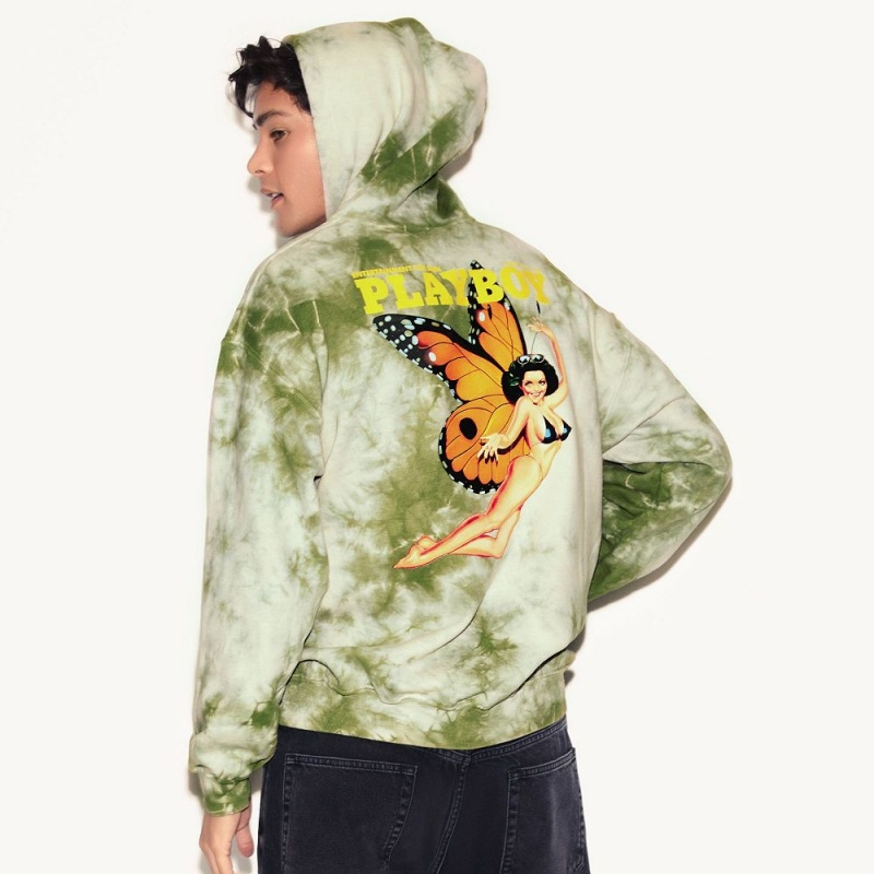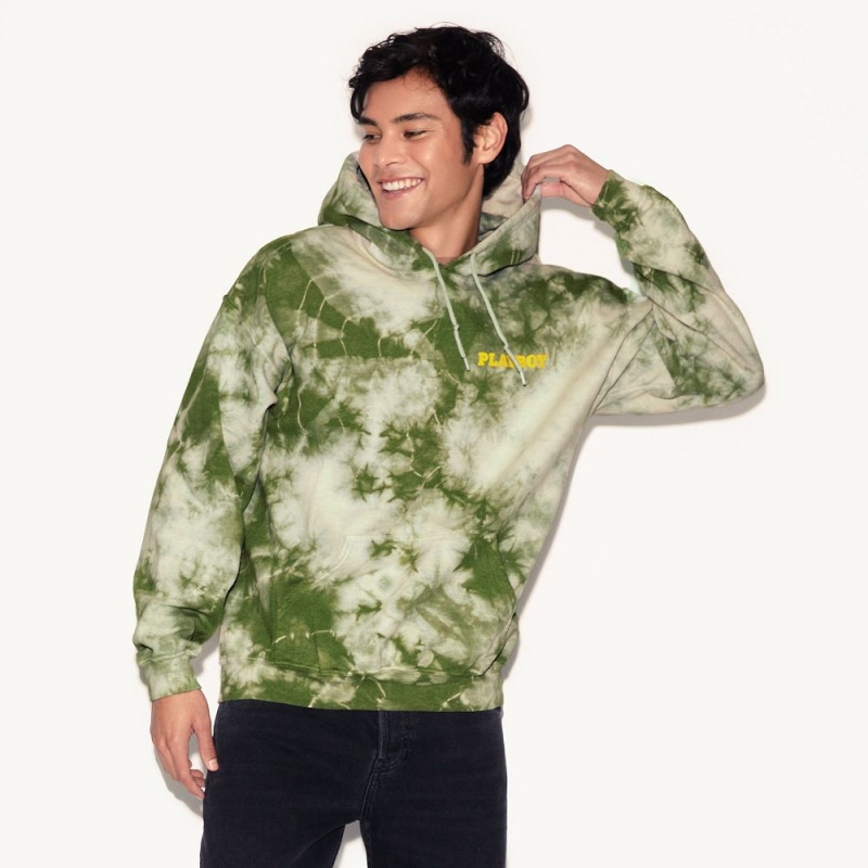 :: Sudadera con Capucha Playboy August 1976 Cover Tie-Dye Hombre Verdes | PLBY-593006