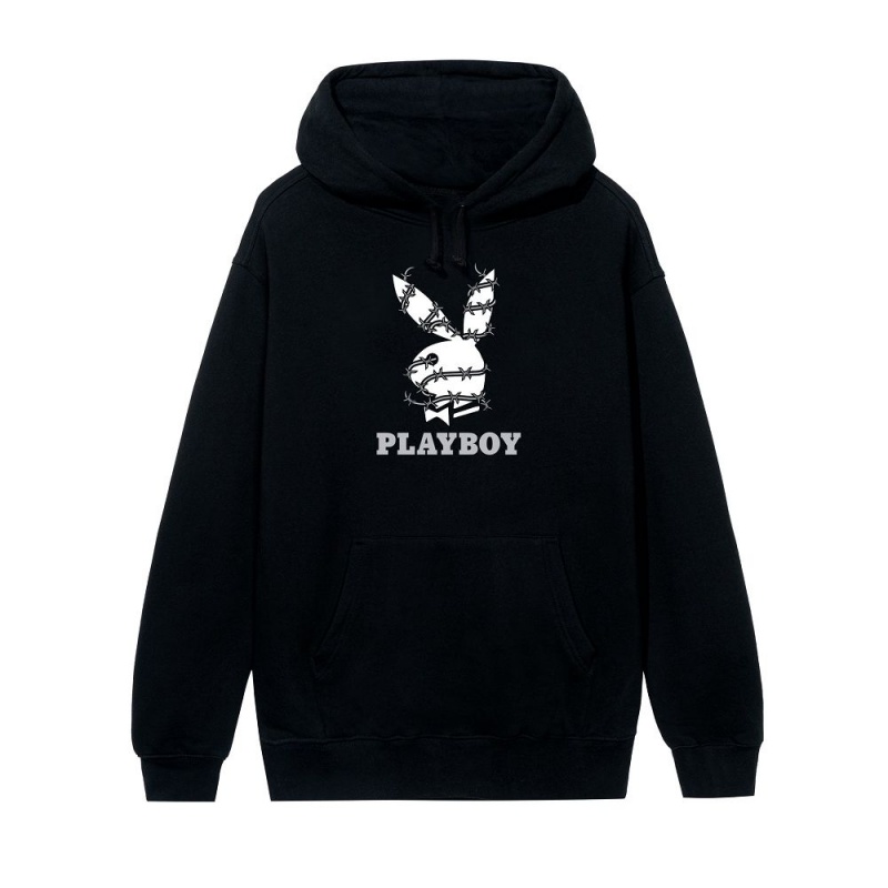 :: Sudadera con Capucha Playboy Barbed Wire Hombre Negros | PLBY-593023