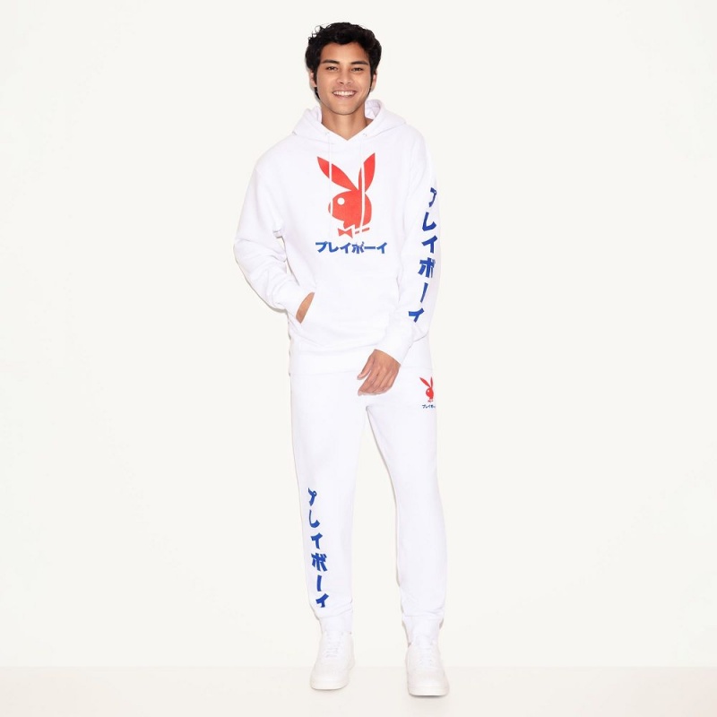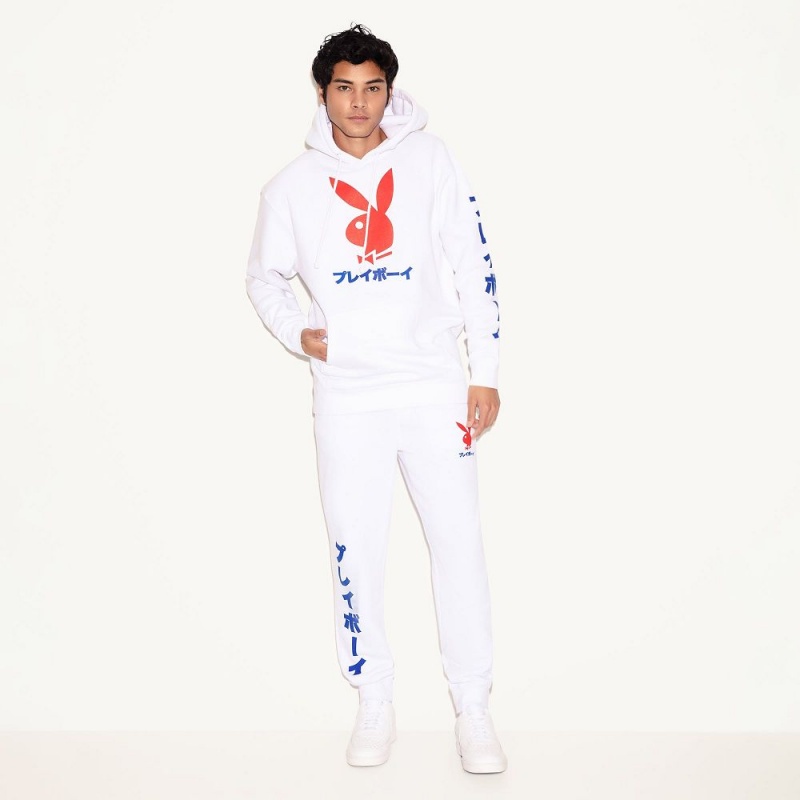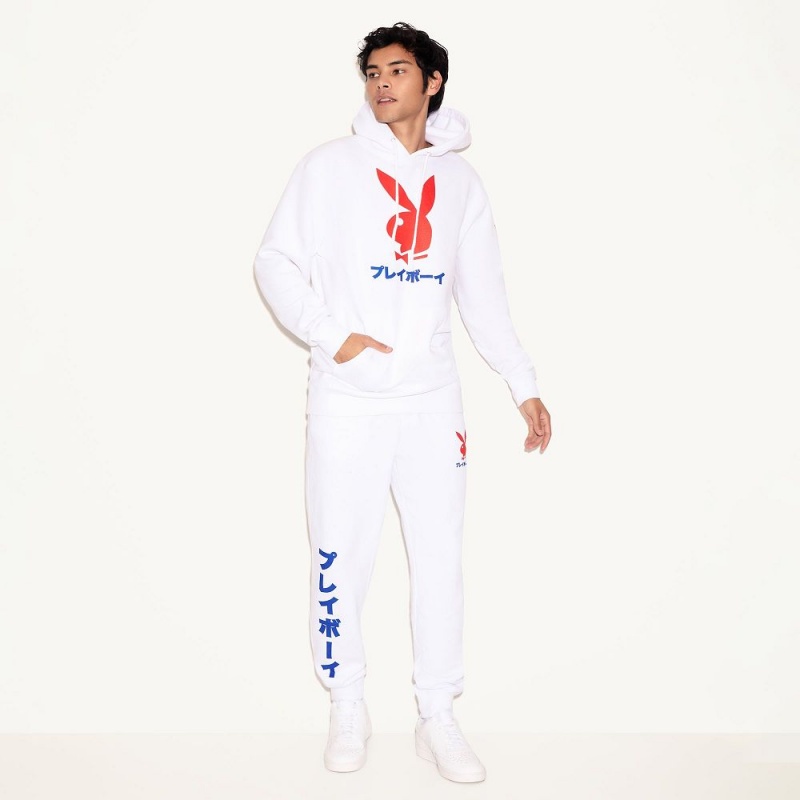 :: Sudadera con Capucha Playboy Japanese Rabbit Head Hombre Blancos | PLBY-593036
