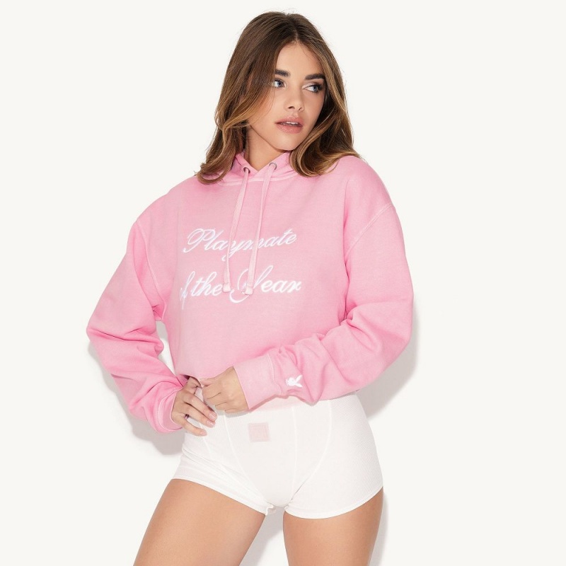 Sudadera con Capucha Playboy Playmate of the Year Hoodie - Pink / White Print Mujer Rosas Blancos | PLBY-592829