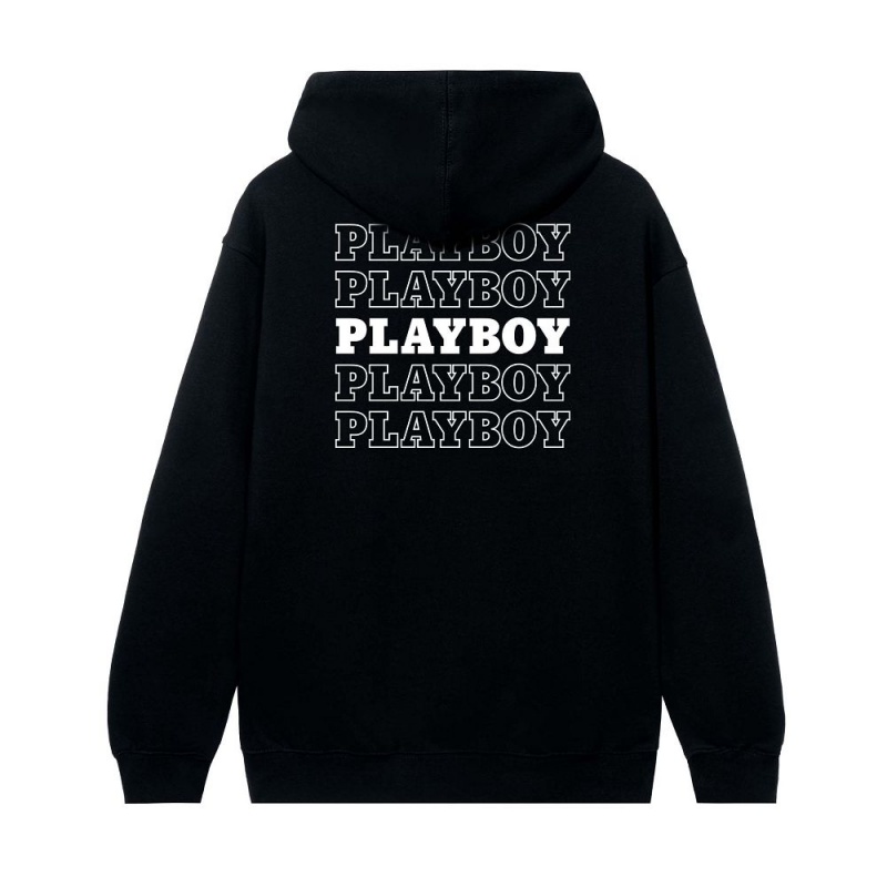 :: Sudadera con Capucha Playboy Repeating Masthead Hombre Negros | PLBY-593050