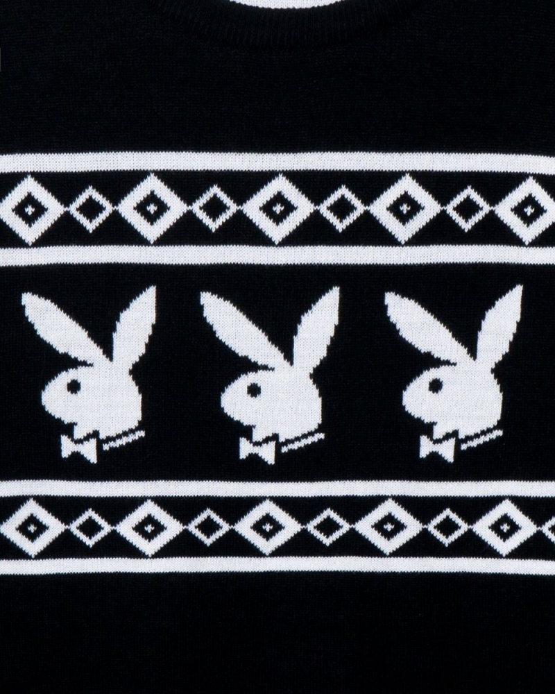 :: Sudadera Playboy Rabbit Head Knit Hombre Negros | PLBY-593062