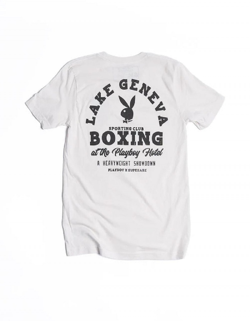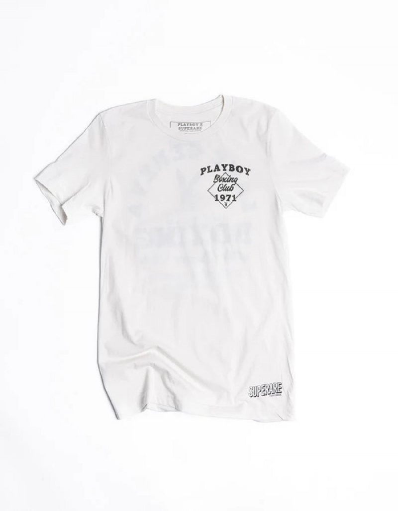 T-shirt Playboy Boxing Hombre Blancos | PLBY-593109