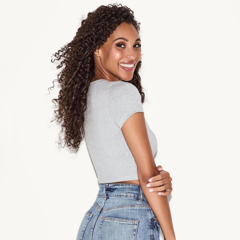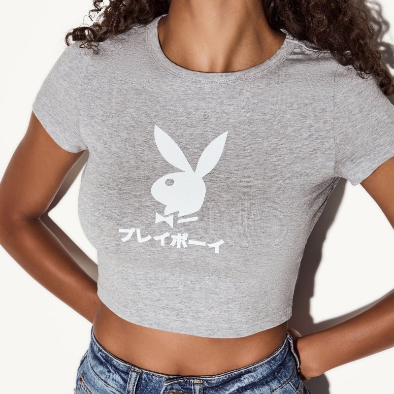 :: T-shirt Playboy Doodle Crew Neck Mujer Grises | PLBY-592885