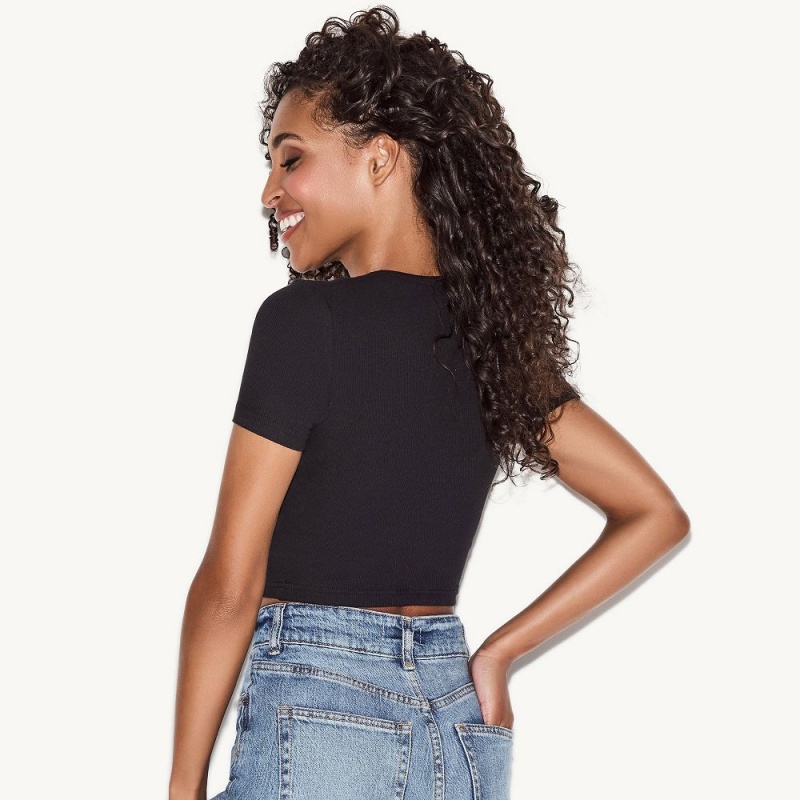 :: T-shirt Playboy Flower Power Seamless Mujer Negros | PLBY-592908