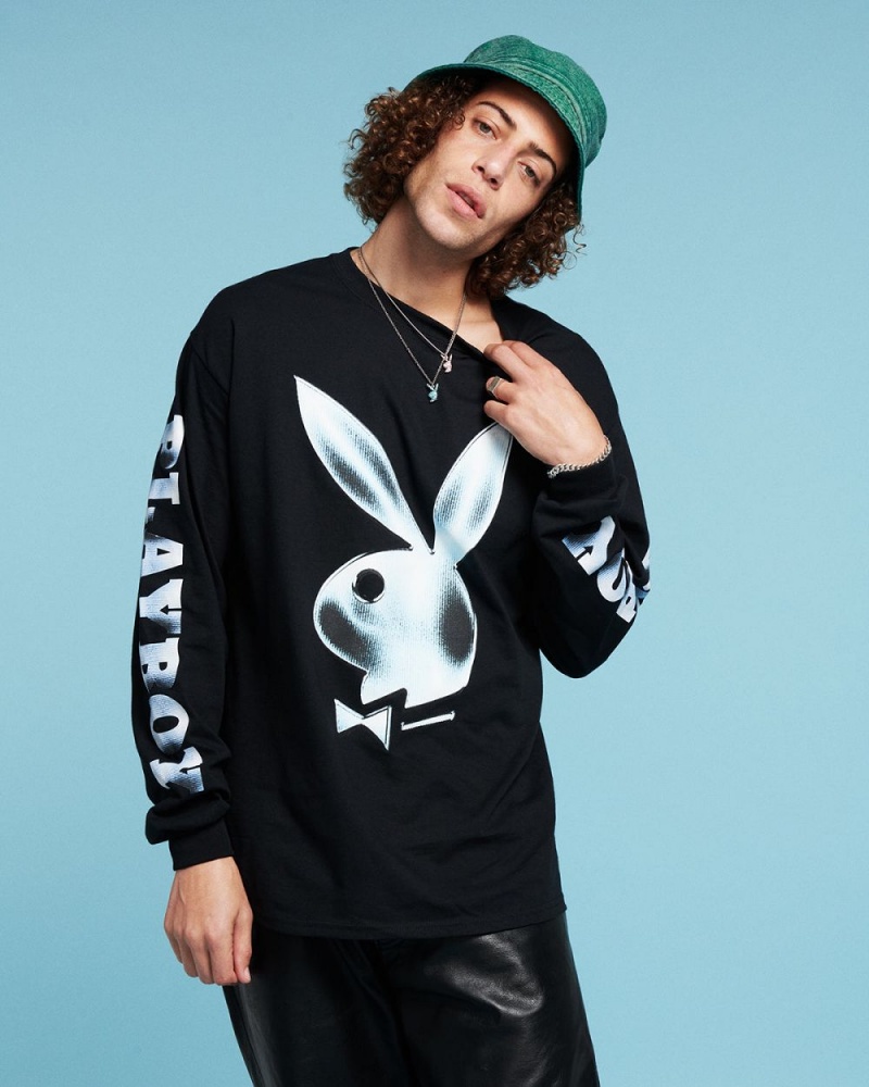 :: T-shirt Playboy Foil Rabbit Head Long Sleeve Hombre | PLBY-593261