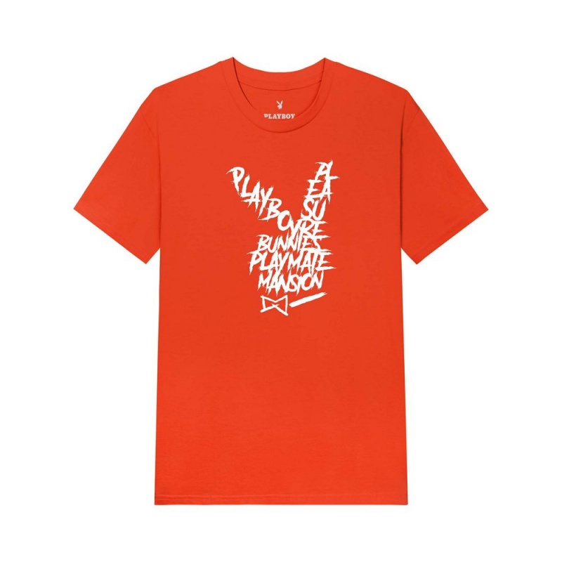T-shirt Playboy Graffiti Rabbit Head Orange Hombre Naranjas | PLBY-593236