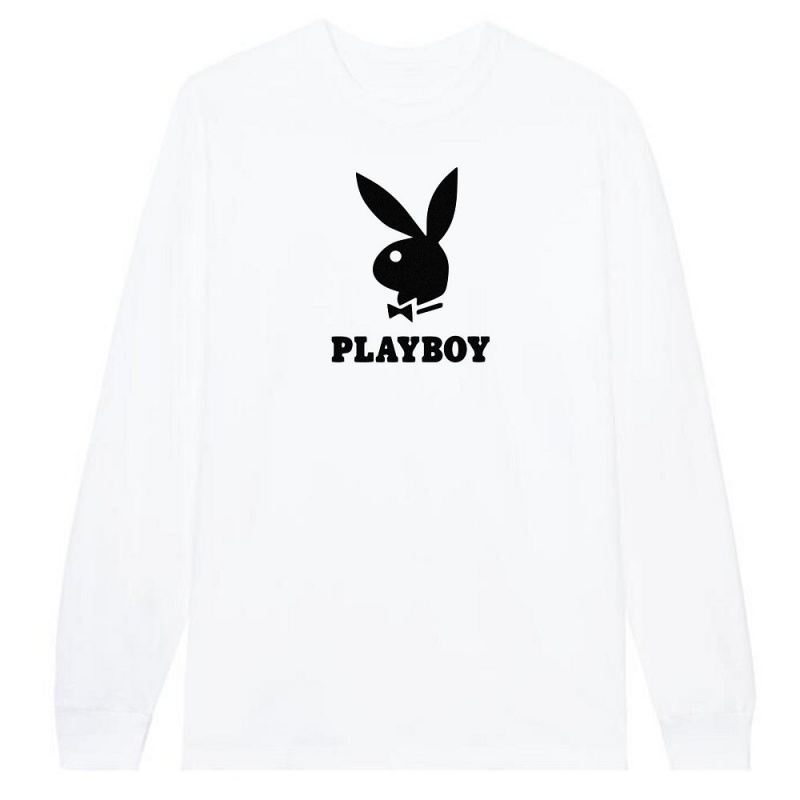:: T-shirt Playboy Logo Long Sleeve Hombre Negros | PLBY-593148