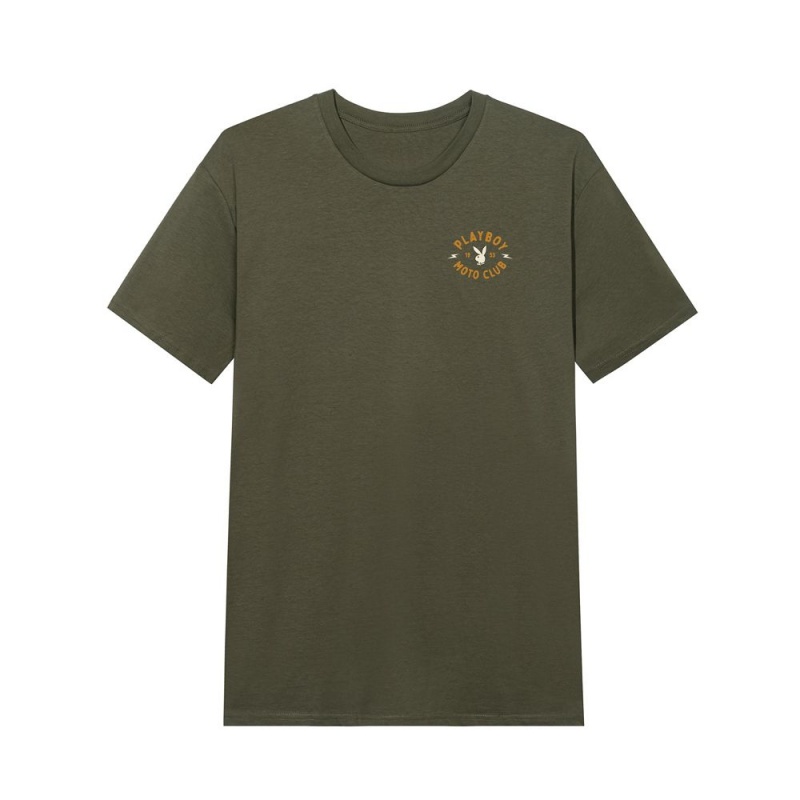 T-shirt Playboy Moto Club Hombre Verde Oliva | PLBY-593247