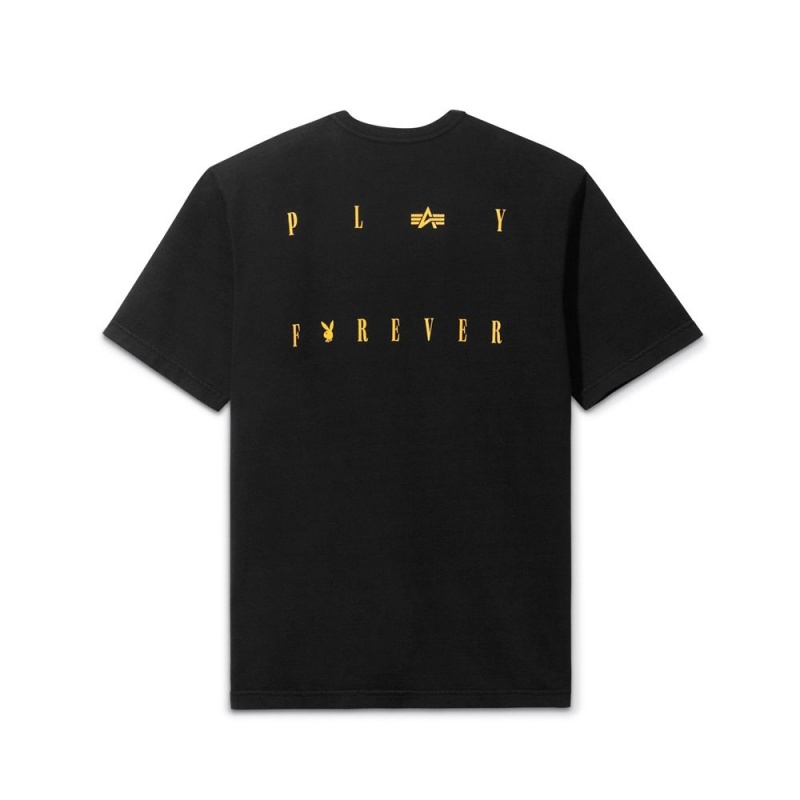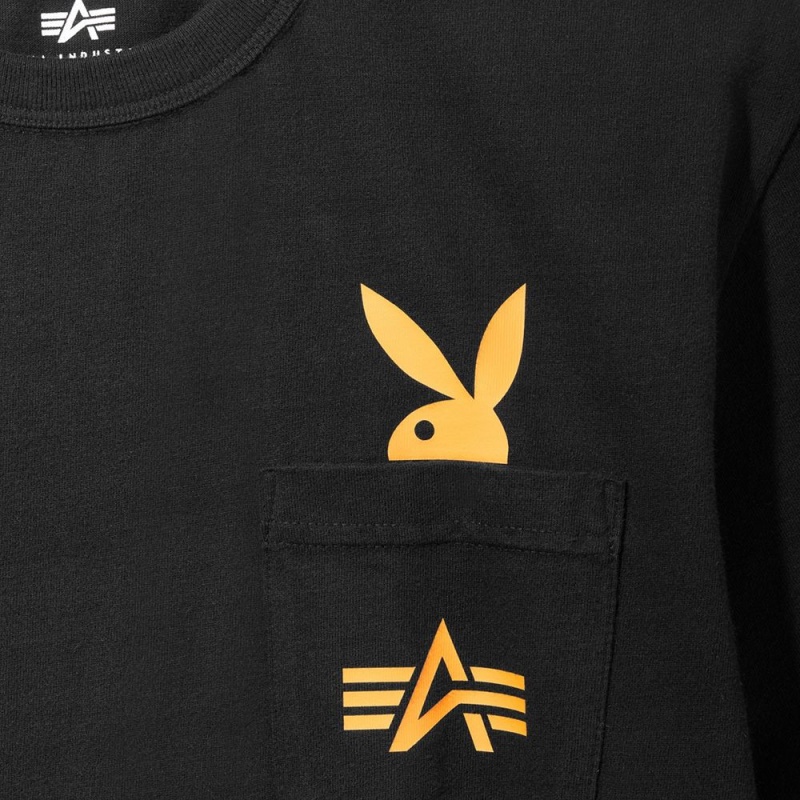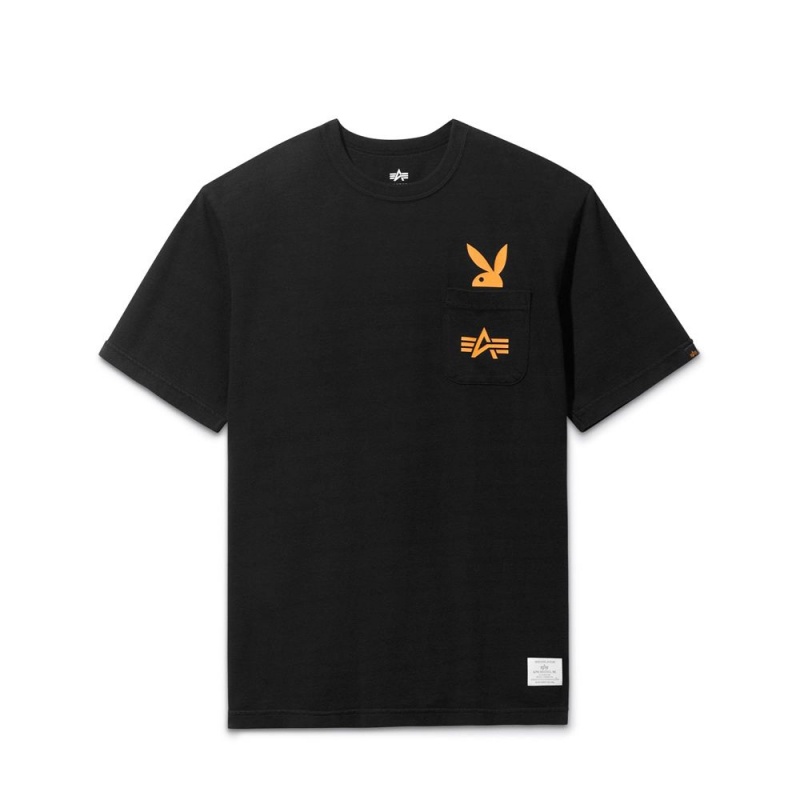 :: T-shirt Playboy x Alpha Industries Play Forever Pocket Hombre Blancos | PLBY-593217