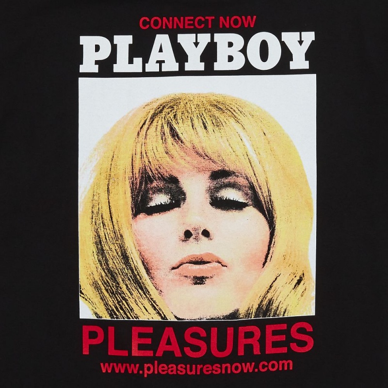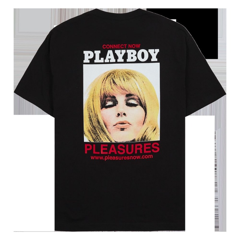 :: T-shirt Playboy x Pleasures Connect Hombre Negros | PLBY-593190