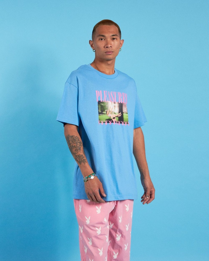 T-shirt Playboy x Pleasures Swinging Playmate Hombre Azules | PLBY-593223