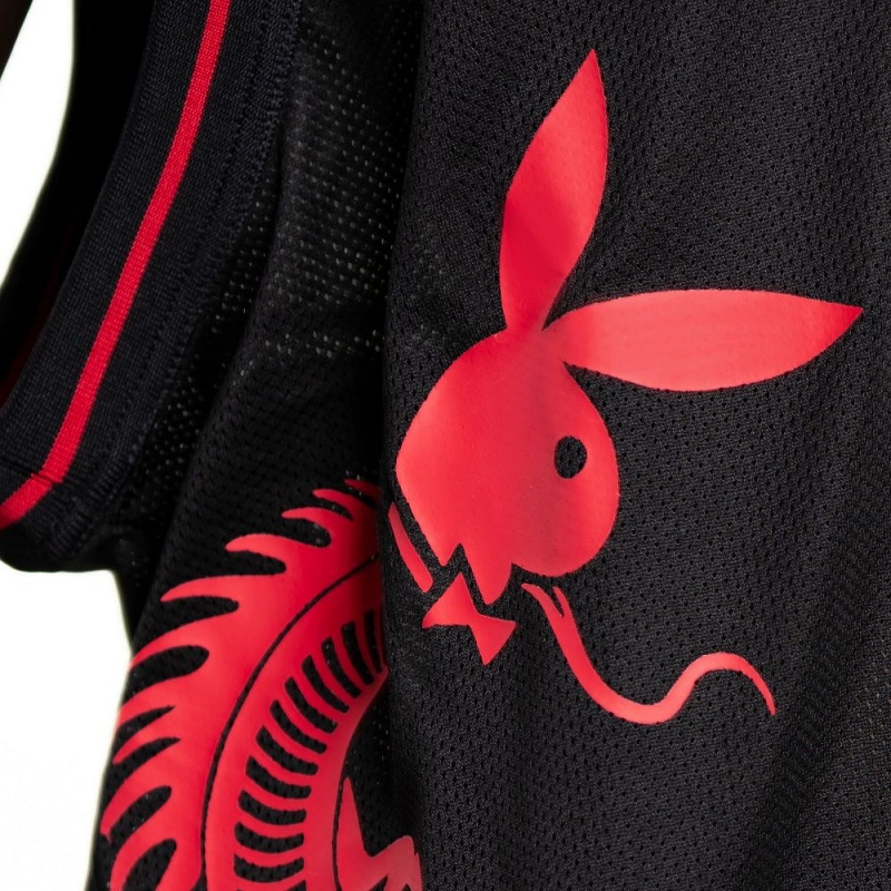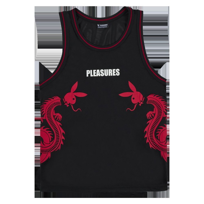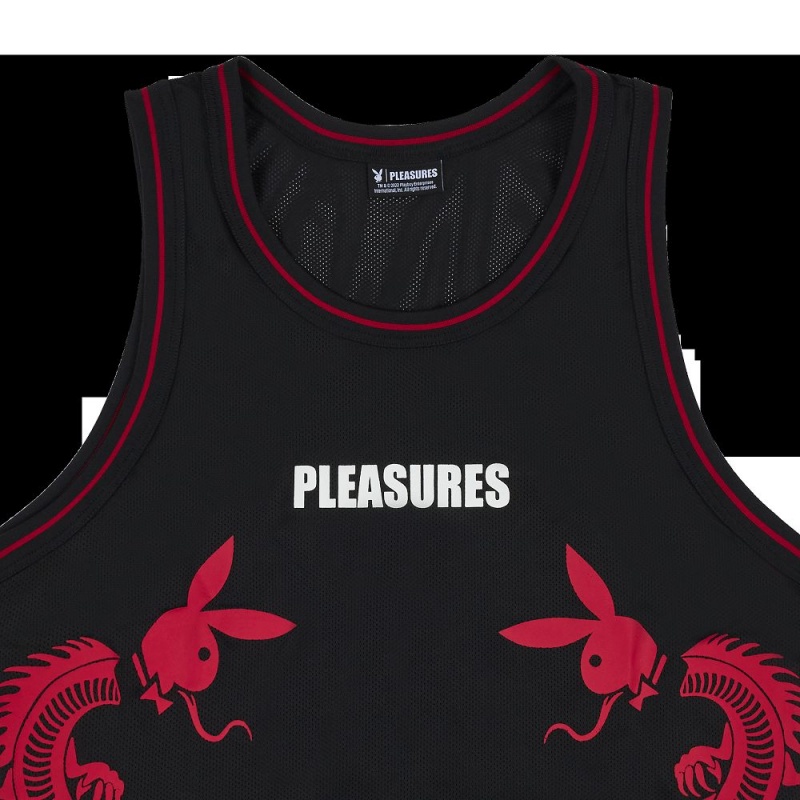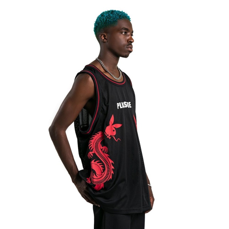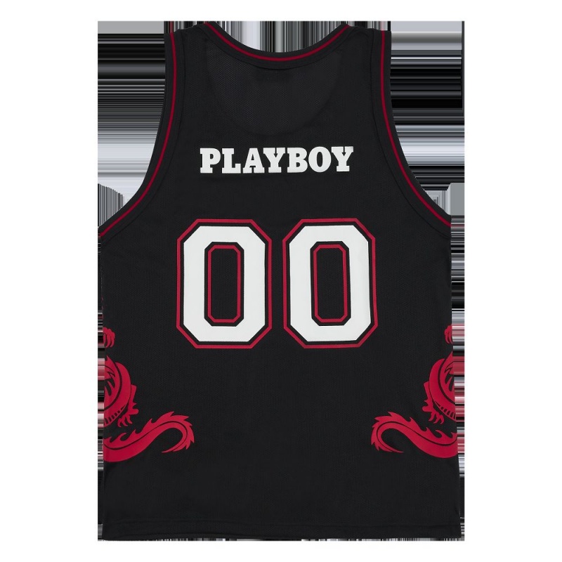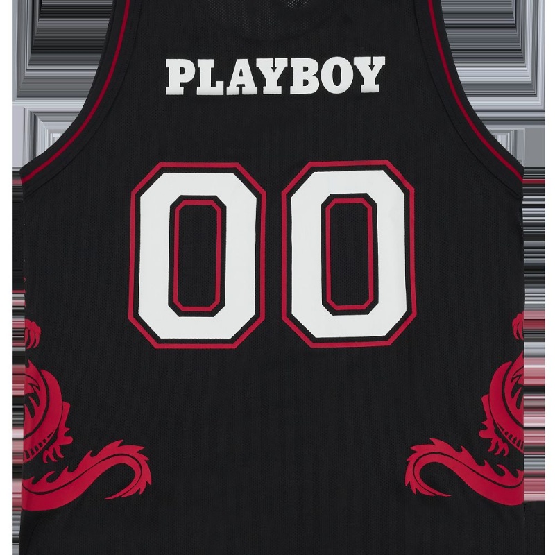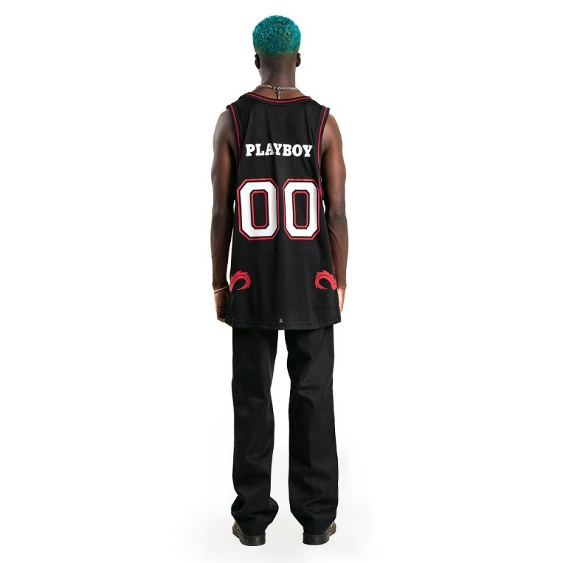 :: T-shirt Playboy x Pleasures Tails Basketball Jersey Hombre Negros | PLBY-593210